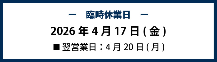誠に勝手ながら、社内研修実施に伴い、下記日程を臨時休業とさせていただきます。